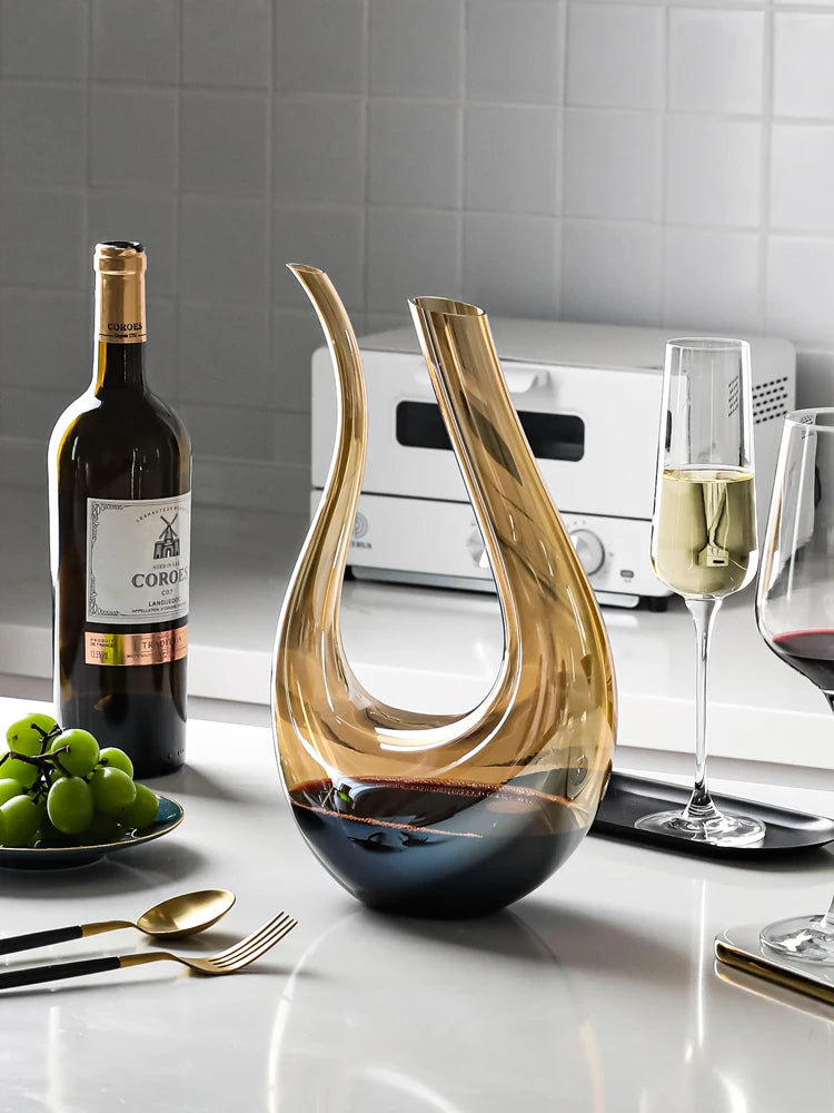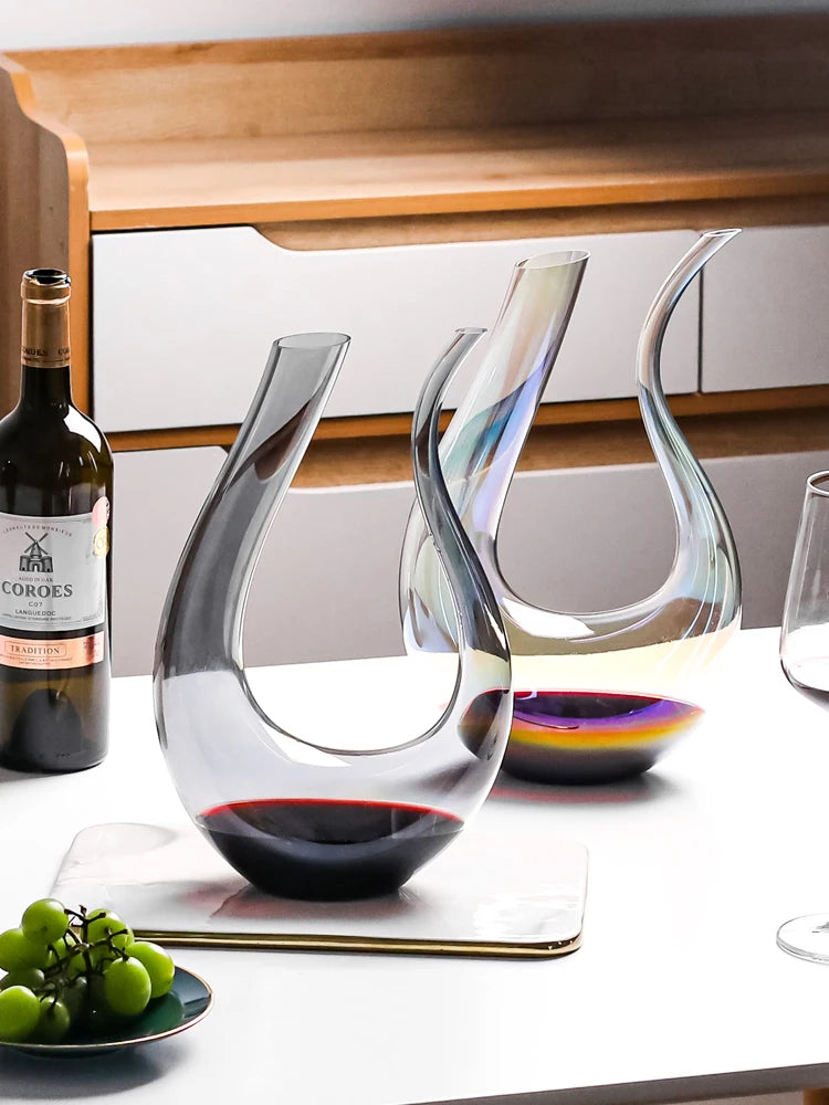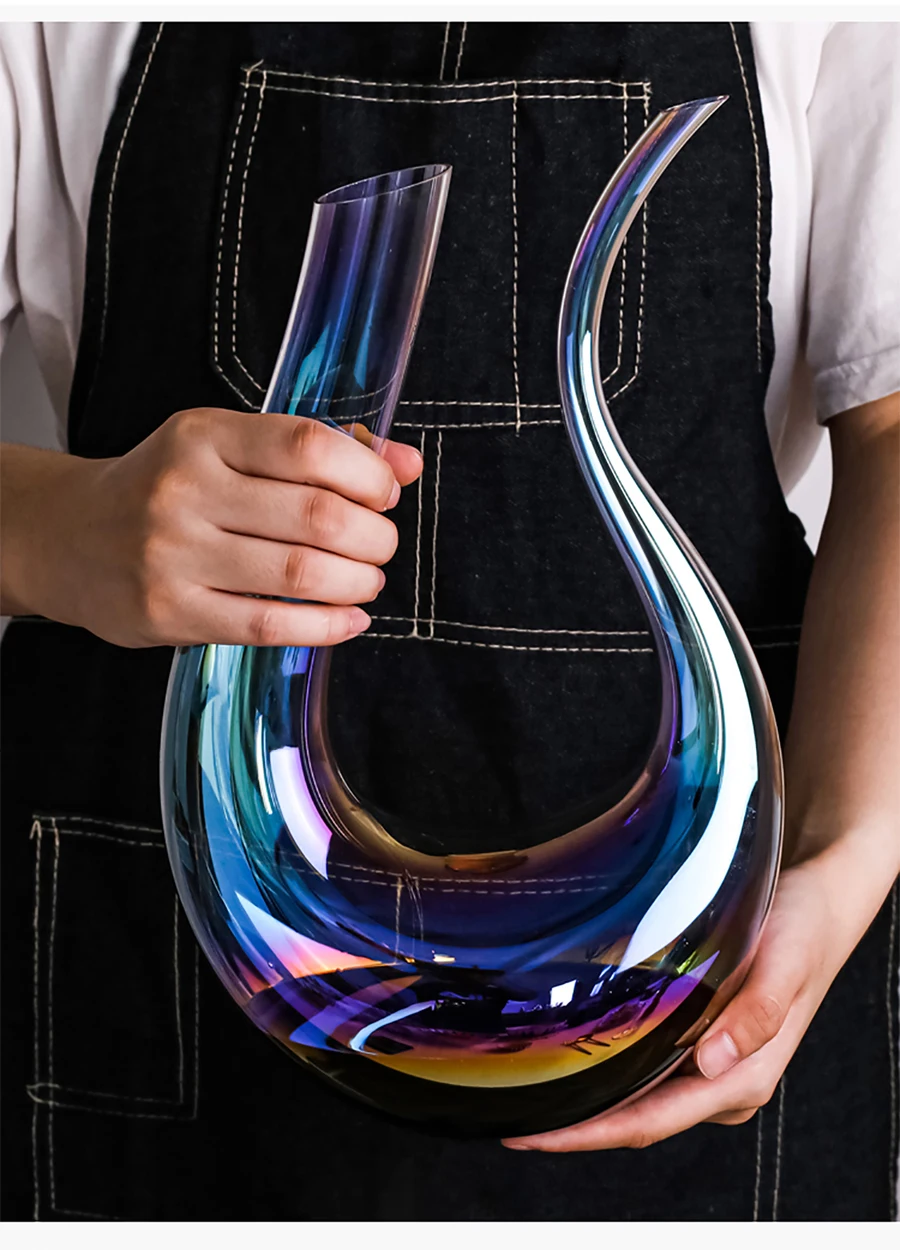 Glass Decanter 1500ML Wine Champagne Whiskey Container Handmade Wine Bottle Pourer Home Bar Tools Colorful U-shaped Decanter